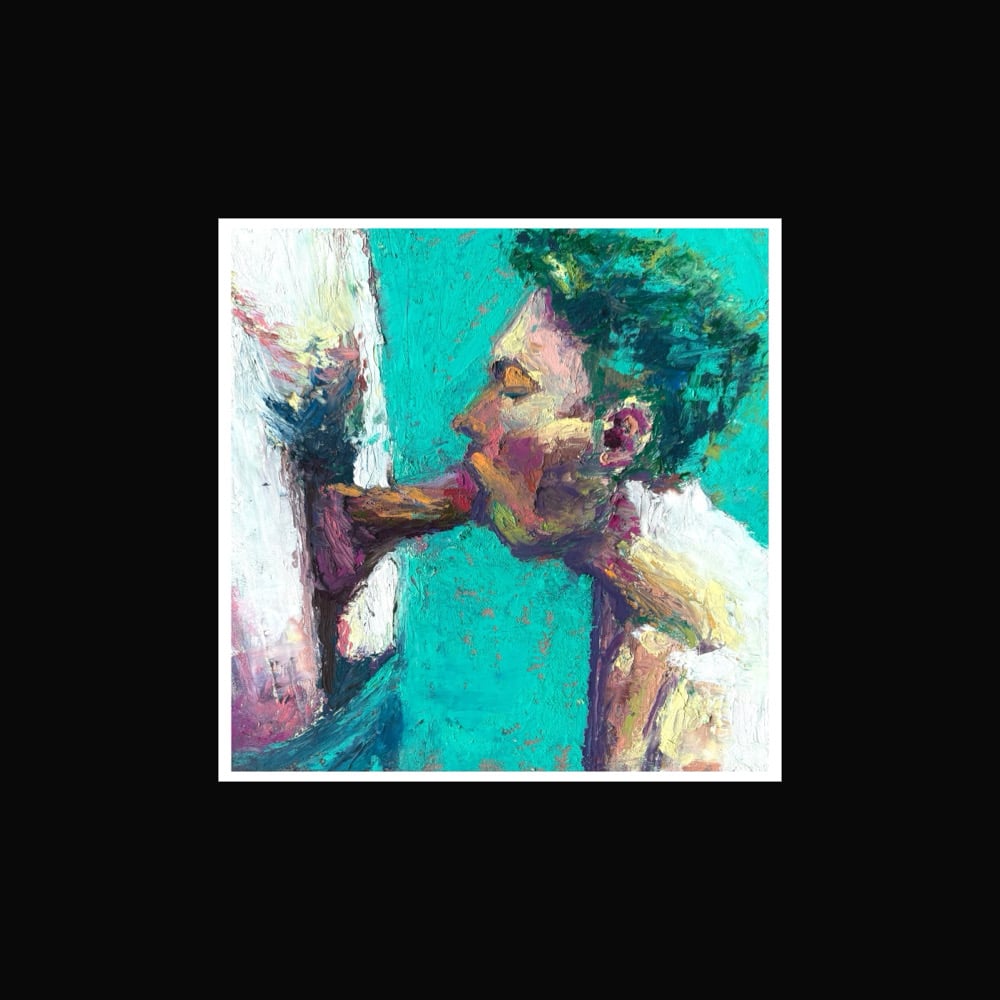 4x4 inches, oil pastel on paper Frame and US Shipping included.